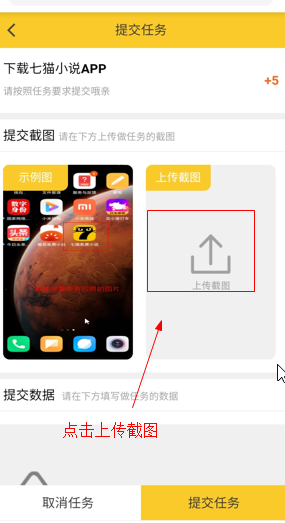 点击领取任务,上传截图到后台审核